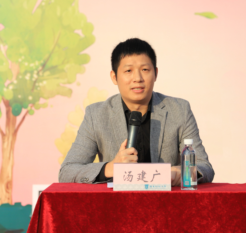 汤建广发言。汤建广肯定了本次生涯体验周的积极意义,并表示华图教育在本次活动中会对广财各位同学学习、就业等方面给予大力支持。