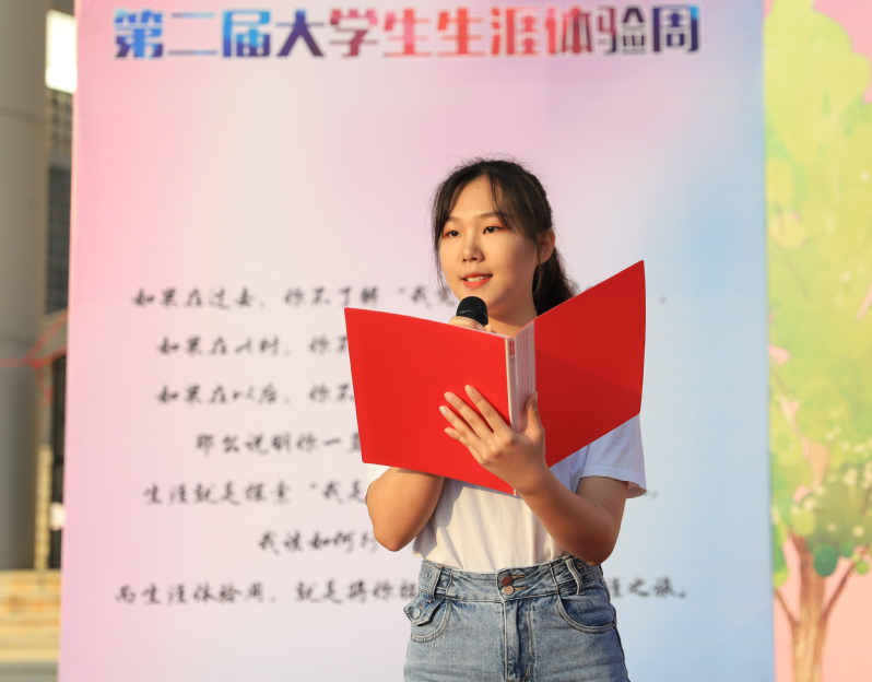 学生代表杨钰琪发言。她鼓励同学们积极参与生涯体验周,从中收获有关于职业规划的知识和方法,让自己的大学生活更加有方向和目标。