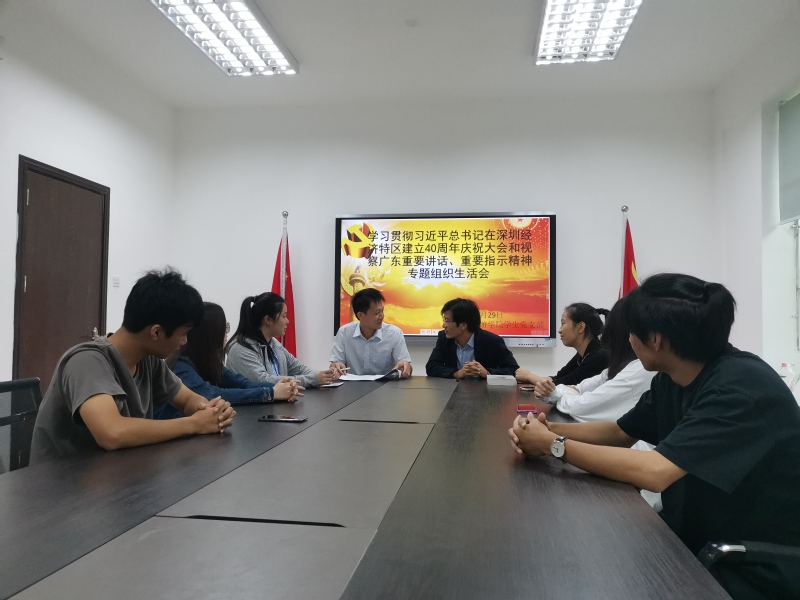 2020年10月29日,校区地理与旅游学院学生党支部在桃园社区11栋102召开“学习贯彻习近平总书记在深圳经济特区建立40周年庆祝大会和视察广东重要讲话、重要指示精神”专题组织生活会。会议由支部书记黄哲主持,支部组织委员龙汛恒及7名发展对象参加会议。