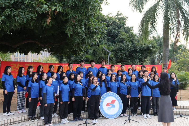 12月10日晨曦,丝丝凉意,阳光透过薄薄的云雾露出明媚的眼,“木棉灼灼,珠水泱泱,莘莘学子,昂扬向上……”同学们奔跑的旋律响彻回音坛。2020-2021学年“五早一晚”学风建设活动之“改革创新迎春风 高歌奏响新征程”m88(简称“校区”)学生院际合唱比赛总决赛在如火如荼进行中。校区党委副书记钟智、学工部副部长兼学工办主任陈发荣、校区团工委科长张健民和艺术学院辅导员张雪娜以及各学院辅导员莅临决赛现场。