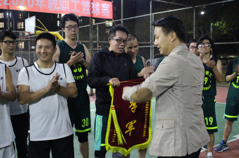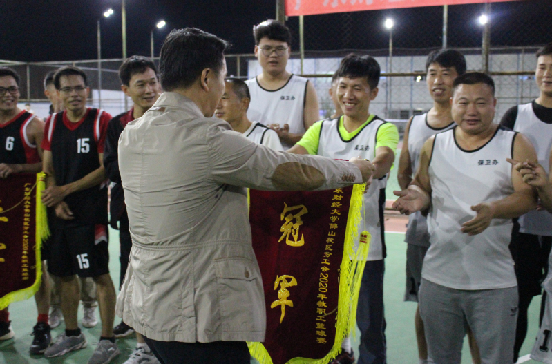 12月10日傍晚,m882020年度职工篮球赛决赛如期进行。本场比赛为闭幕赛,由m88机关联队对阵学工队。经过紧张激烈的角逐,最终校区保卫队获得冠军,机关联队获得亚军,学工队获得季军。钟智书记分别为三支队伍颁发锦旗,并留念合影。