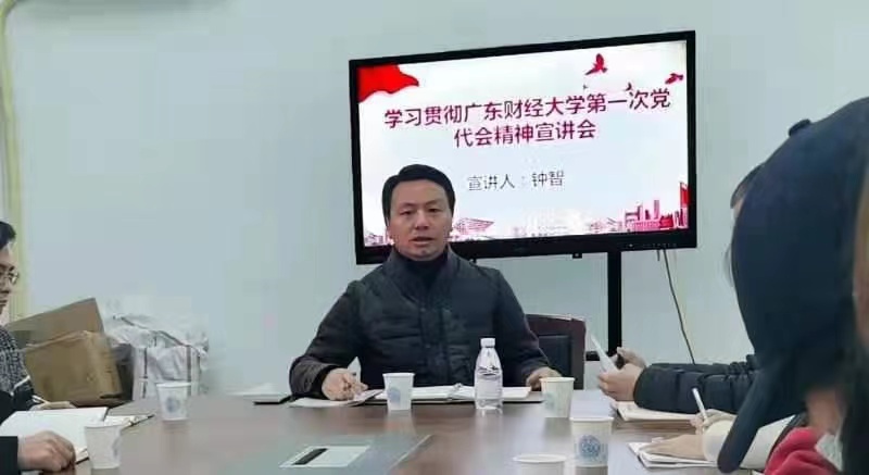 紧接着,钟书记从成绩、不足、经验、形势、目标、定位、基本思路以及具体措施八方面给我们讲述了党代会的具体内容,简要提炼出了大会精神的精髓所在。他掷地有声的话语中充满着他对我们的期盼,希望我们能深刻领会党代会精神,与所有广财人一起坚持“两步走”,为实现我校建设“大湾区一流财经大学”、建设“六个一流”的目标贡献自己的力量,为广财做贡献。