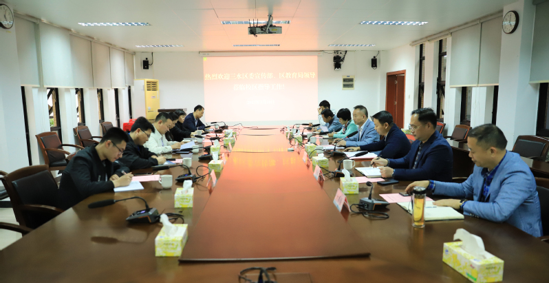 3月10日下午,三水区委宣传部常务副部长黄猛高、区教育局副局长罗嘉幸等一行6人到m88调研。学校党委常委、m88管委会主任王伟,m88党委副书记钟智,m88党政办、共建办、学工办、保卫办、团工委等部门负责人参加调研会。会议由王伟主持。
