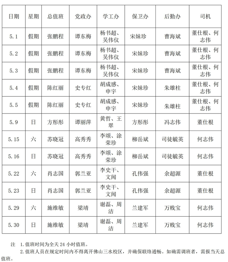 m882021年5月份值班表