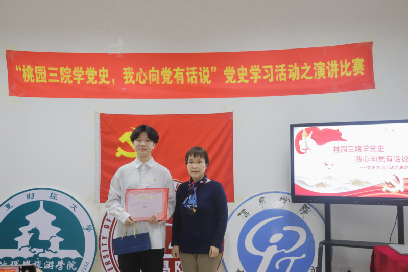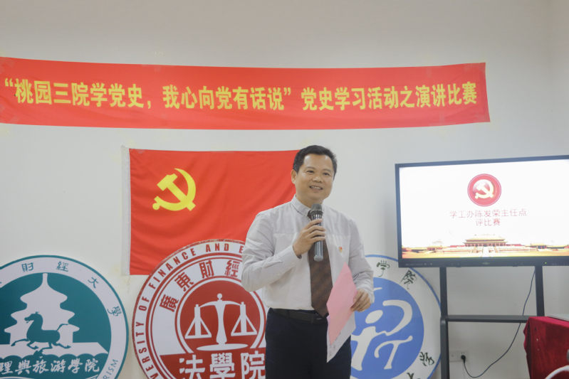 4月27日,由m88法学院、信息学院、地理与旅游学院学生党支部联合组织的“桃园三院学党史,我心向党有话说”党史学习教育之演讲比赛成功举办。m88党委副书记钟智、图书馆馆长施维敏、学工办主任陈发荣、三学院党委副书记郑田、陈莎莉、黄洁娜莅临比赛并担任评委。