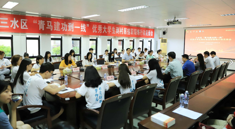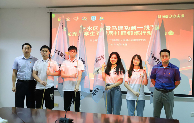 5月18日下午,三水区“青马建功到一线”优秀大学生到村居挂职锻炼行动见面会在m88第一会议室举行。三水区团区委书记叶俊凯,m88党委副书记钟智、校团委副书记张鹏程,相关社区团委书记及参与挂职锻炼活动的青马学员参加会议。叶俊凯、钟智为三水区助力乡村振兴青马志愿服务队授旗。