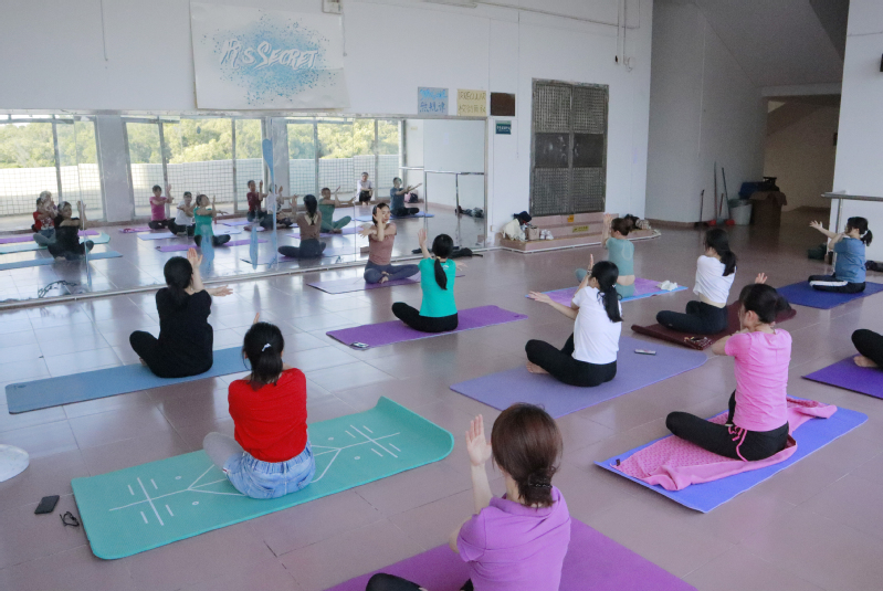 伴随着轻柔舒缓的音乐,教职员工在瑜珈教练的指导下,进行腹式呼吸练习和基础的拉伸体式练习,使自己进入放松状态,身心得到舒展。首次培训课结束后,参加培训的教职员工表示课程难度适宜,个别动作有些吃力,身体也有些僵硬,但是相信坚持下去一定会取得良好的锻炼效果。而健身舞难度更低一些,主要是针对年龄稍大一些的女教职工开设的。