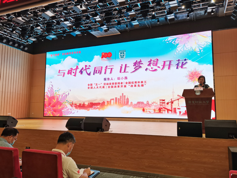 报告会上,胡小燕分享了时代的进步与发展给她带来的七段人生经历:一从迷茫无助到坚定信心;二是从轻工业转向陶瓷业;三是进入新明珠,把握新机遇;四是从普通员工走向管理岗位;五是获得认可,融入当地;六是从专注个人奋斗到为打工群体发声;七是从企业管理者到任职区总工会。通过对这七个人生转折点的讲述,串起了一段传奇的人生经历,展现了一个美好的奋斗时代,讲述了一个梦想开花的励志故事。