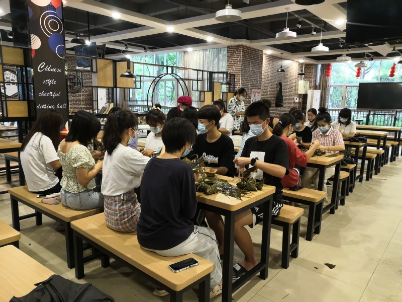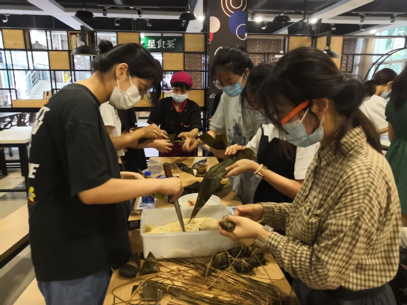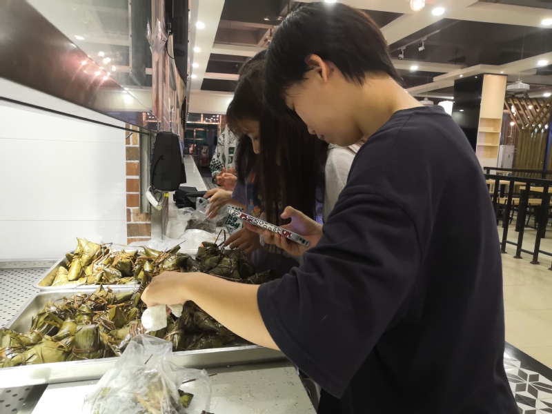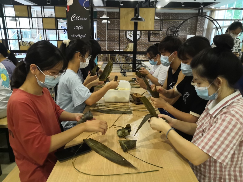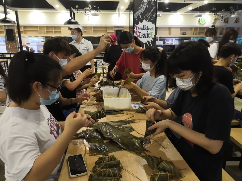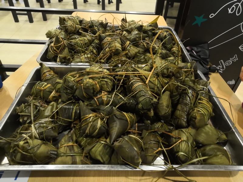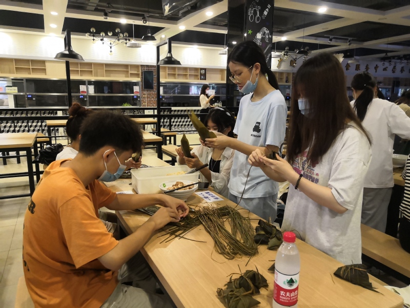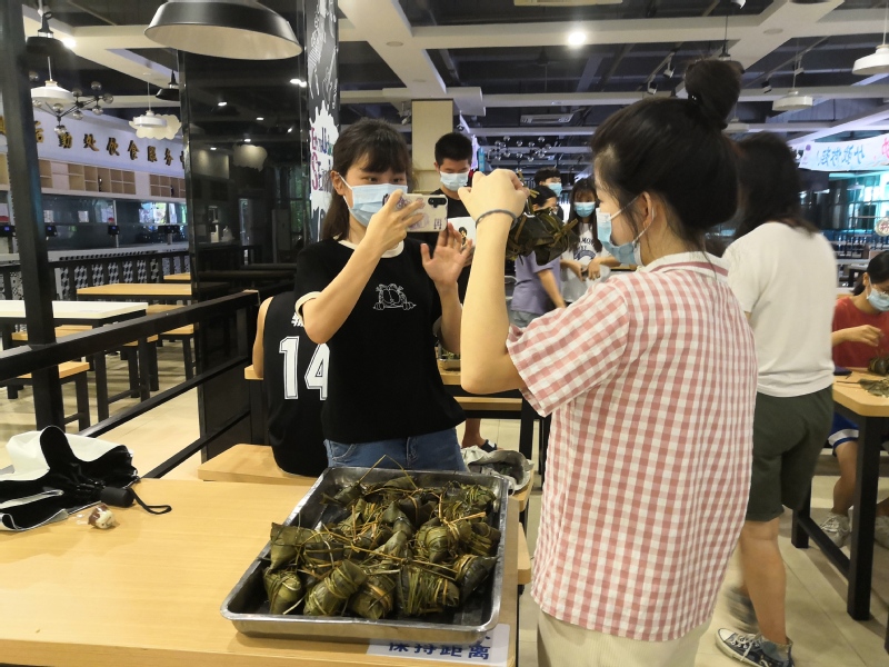 下午五点,两大盘千奇百怪的粽子出炉了,同学们认领自己亲手包的粽子送自己、送老师、送朋友。来自地理与旅游学院的学生吴家燕,她说:“端午节可以包粽子吃粽子,拥有了一个完整的端午节”;来自人文与传播学院的学生黄雨婷,她说:“不在家的端午也很开心!”在此次活动中同学们齐动手包粽子,共享端午乐,感受到了劳作的快乐和满足感。