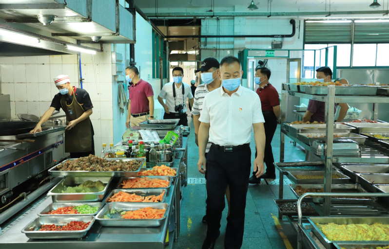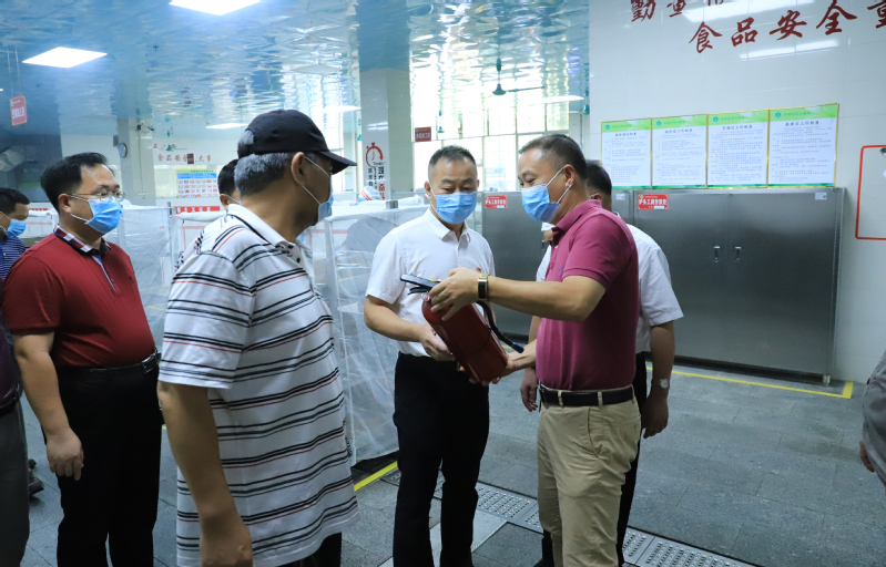 王伟一行首先查看了校区监控室和消防控制室,并查看值班日志,要求校卫队员严格遵守24小时值班制度,加强校区出入人员管理,做到一旦出现突发情况能够及时发现、及时处理,守好校园安全第一道防线。在校区饭堂,王伟一行对燃气使用安全管理、消防设施、食品卫生等进行了全面检查,要求要严格遵守燃气使用操作规范、加强饭堂卫生清洁工作,确保学生饮食安全。在职工宿舍及学生园区,王伟一行详细查看了职工用电、用气安全,要求教职工要切实注意用电安全,禁止使用煤气罐及其他危险化学品,共同营造安全和谐的校园生活环境。检查学生宿舍园区时,要求后勤部门对宿舍楼外墙破损要及时维修,对影响消防安全通道要及时整改,消除安全隐患。在校区商业城,王伟一行对商业城店铺的疫情防控、食品卫生、用电用气安全情况进行详细检查,对发现的问题,督促商铺负责人立即整改。