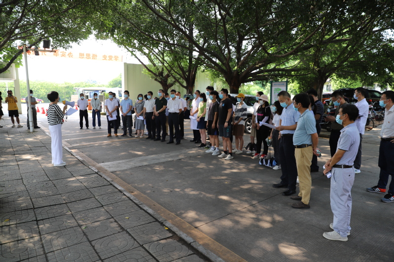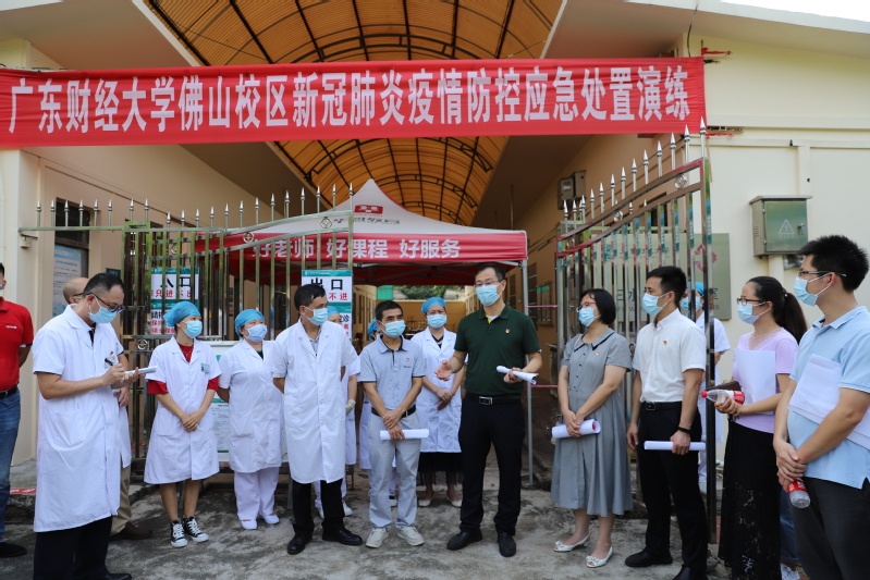 为进一步扎实做好秋季学期开学前新冠肺炎疫情防控工作,保障师生员工的生命安全和身体健康,8月30日下午,m88进行秋季学期新冠肺炎疫情防控应急演练。学校党委常委、校区管委会主任王伟,管委会副主任陈红丽、田辉,校区各部门负责人,校区医务室负责人及相关医护人员,湾区影视产业学院党委书记杨长春,研究生分院负责人谢琦,校区部分辅导员及其他相关人员参加了演练。三水区疾病预防控制中心应急办主任陈建千,三水区人民医院党委副书记蔡敏、应急安全管理科副科长梁松、疾控办副主任陈丽文,云东海街道社区卫生服务中心吴湛棉医生应邀参加。