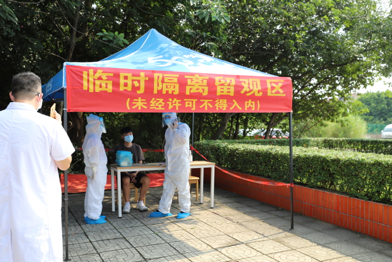 本次演练分为三部分,一是学生返校体温异常的应急处置,二是一学生感觉不舒服自行到门诊部就医的应急处置,三是一隔离观察学生情绪不稳的应急处置。演练各个环节精准安排,各个场景科学设置。通过本次演练,进一步完善校园新冠肺炎疫情应急处置环节,进一步提升校区应急处置能力。