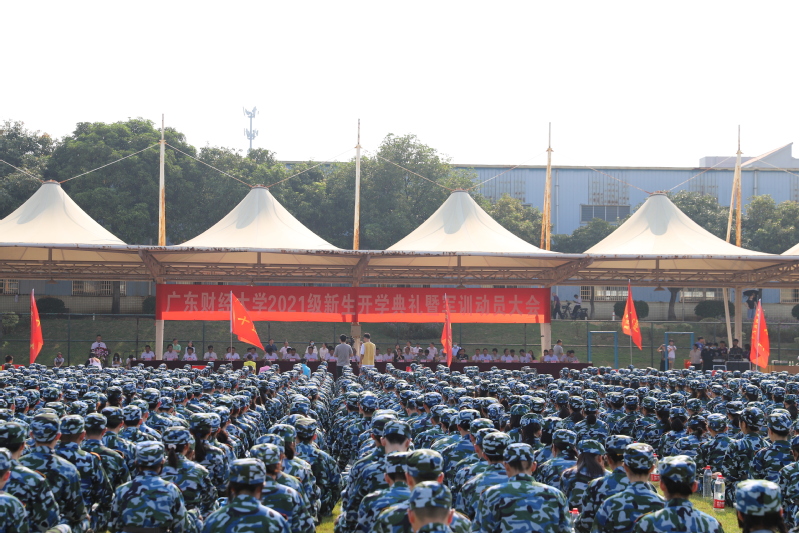 刘祖华发表军训动员讲话。他对2021级新生提出三点要求:一要敢于吃苦,迎难而上,以饱满的热情和昂扬的斗志投入训练。二要严守纪律,服从命令,听从指挥。三要虚心学习,学习部队的好思想、好作风、好传统,把军训中的收获转化为学习的动力。他希望同学们以饱满的热情、昂扬的斗志、顽强的毅力、威武的军姿展示奋发向上的精神风貌,展示广财学子朝气蓬勃的青春风采!