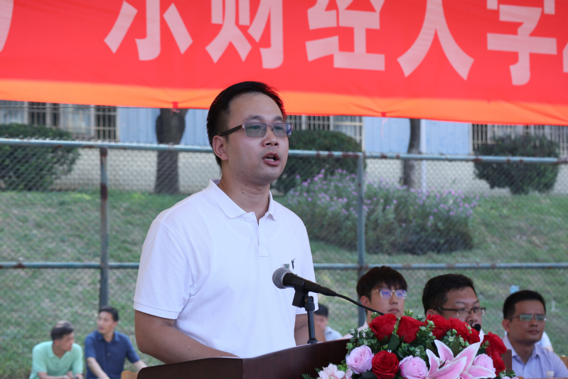 金融硕士班黄至诚同学作为老生代表发言,他向师弟师妹们提出了两点建议:一是砥砺奋进,不负时代和青春。作为中国一代的新青年,同学们更应不断奋进,勇担历史使命。二是珍惜作为“广财人”的每一天。学校为大家创造了各种学习和锻炼的机会,同学们应珍惜和把握。坚定理想,砥砺前行,去看更好的满天星辰。
