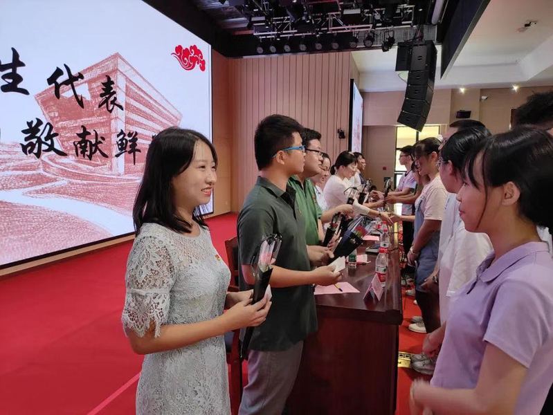 校歌过后,2021级学生代表向教师们敬献鲜花。鲜花是尊敬和美好的象征,它承载着学生对教师的良好祝愿。感恩教师们不求回报地为学生提供帮助和鼓励;感恩教师们默默辛勤的付出。献花仪式更是学生具有责任意识、尊重意识和健全人格的体现。