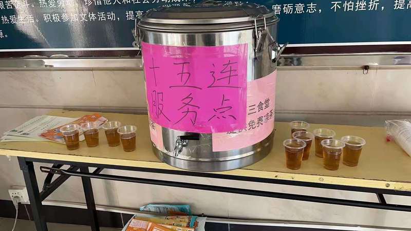 统数学院党委高度重视新生军训工作,在学院党委副书记聂华丽的亲自部署下,9月13日起,学院团委、学生会根据军训相关工作安排,在新生军训期间统一开展了“军训送清凉”活动。9月13日是送清凉的第一天,当天下午3点半,统数学院的清凉饮品已经准时送达军训场地,负责送清凉活动的学生顶着高温热暑,将凉茶送到了学院军训新生和教官的手中。在“军训送清凉”现场,一份份清凉,一张张笑脸,一句句问候,无不寄托着统数学院对2021级新生的关爱。