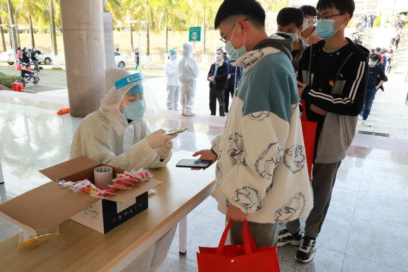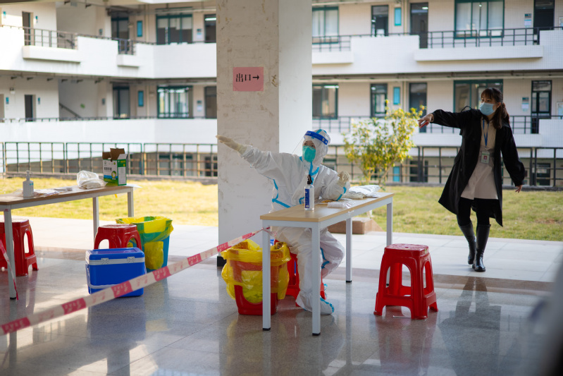 按照学校疫情防控领导小组的统一部署,疫情防控专项工作组相互配合,各司其职;医护人员专业负责、志愿者们耐心指引、师生员工积极配合,现场秩序井然,检测工作高效有序。同时,根据疫情防控需要,两校区严把“校门关”,对入校人员严格落实入校身份核验、体温检测、健康码、行程卡、48小时内核酸检测阴性结果查验等防疫规定,并在校门报到点设置了入校前洗手消毒和更换新口罩等前置环节。
