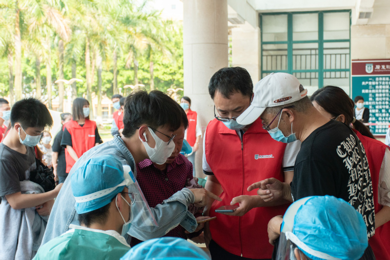 在核酸检测现场,不难发现身穿红色马甲和绿色马甲志愿者忙碌的身影,那是教工志愿者和学生志愿者投入疫情防控工作,不怕酷热、不畏辛苦、忙前忙后的画面,更是鲜红党旗在m88抗疫一线高高飘扬的画面。m88自招募疫情防控教工志愿者以来,已涌现了一批热情投入核酸检测、东西校门值守、外卖监管等工作的教工志愿者们,他们在履行好本职岗位的同时,加班加点为校区疫情防控贡献党员的智慧与力量。