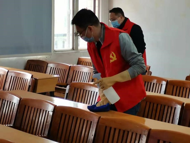 为加强卫生治理,新东升物业服务公司(以下简称“物业公司”)每天对学生教学楼及其公共活动区域、卫生间以及各死角地带进行全面消杀工作。为发挥党员模范带头作用,m88党委第三党支部全面对标落实行动,积极加入消杀队伍,制定“党员我先行排班志愿者”计划,开展主题党日活动。3月28日起组织本支部党员、入党积极分子和部门教职工利用中午休息时间参与教学楼消杀工作,开展志愿服务。志愿者们穿上党员志愿者马甲,戴着口罩,按比例配好消毒液后,协助物业公司进行消杀工作,认真细致地对每间教室的每个角落用抹布擦拭和使用喷雾消毒,为广财学子们学习提供安全、干净的环境保障。