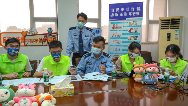 为深入贯彻m88防范电信网络诈骗工作专题会议精神,5月11日,m88管委会保卫办联合佛山反诈中心三水分中心举办了模拟仿真诈骗宣传教育活动。m88管委会保卫办副主任申宇、工商管理学院学生党支部书记王亮、三水区云东海街道综合治理办公室副主任陈丹、三水公安分局指挥中心民警潘高远、三水反诈分中心宣讲员曾伟健及m88反诈宣传志愿服务队参加活动。