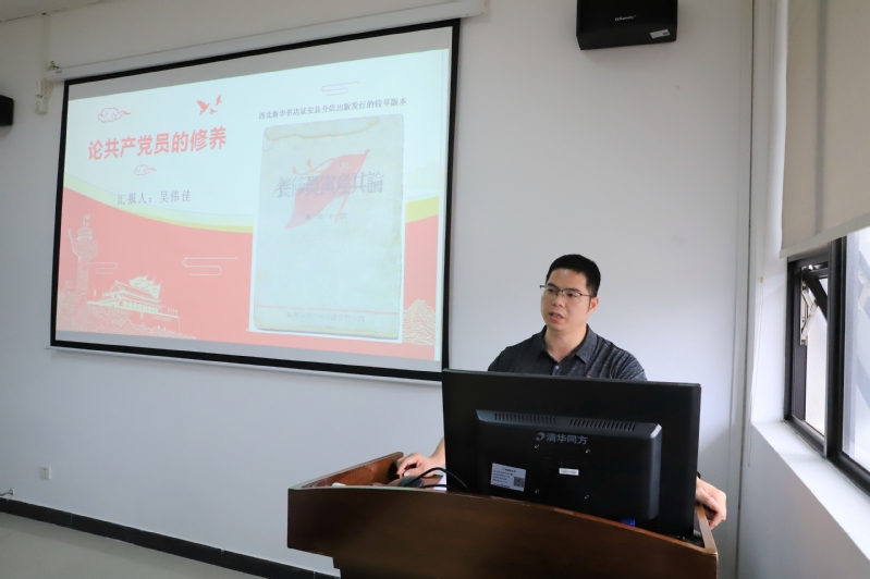 本次读书会分享交流的书籍是刘少奇同志的重要著作《论共产党员的修养》,由党支部宣传委员吴伟佳担任主讲人。