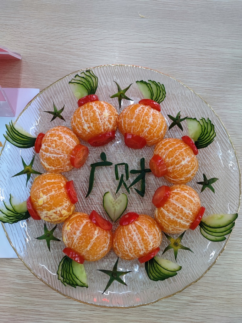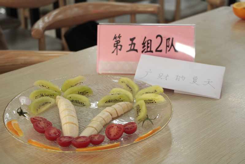 经过40分钟的精雕细琢,一盘盘栩栩如生、寓意新颖、别出心裁果盘 “新鲜出炉”。看着自己亲手制作作品,大家都充满成就感。