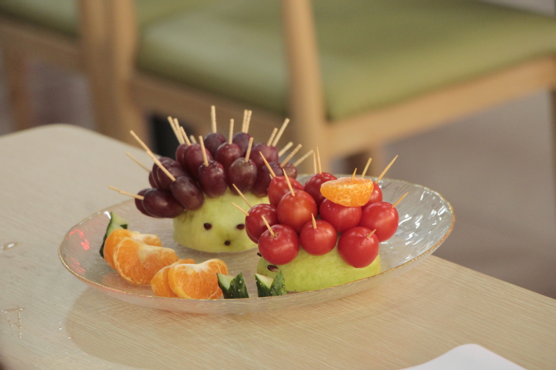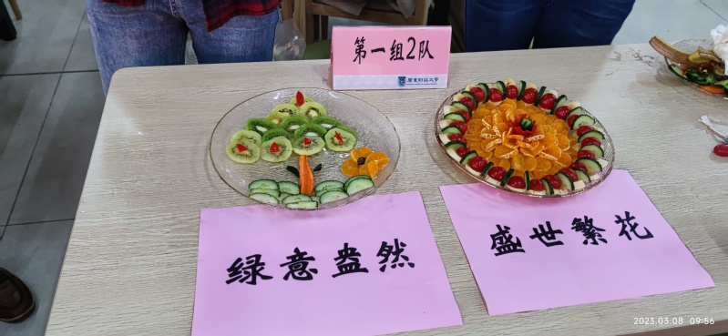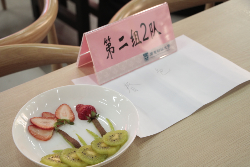 首先开始的水果拼盘活动。各参赛队伍迅速进入角色,有的削皮、有的切块、有的雕花……利用各种水果的颜色和形状尽情发挥才艺才智,精心制作出独具巧思的作品,教职工之间协作互助,现场氛围其乐融融。