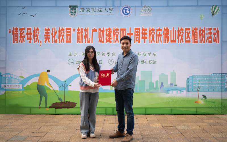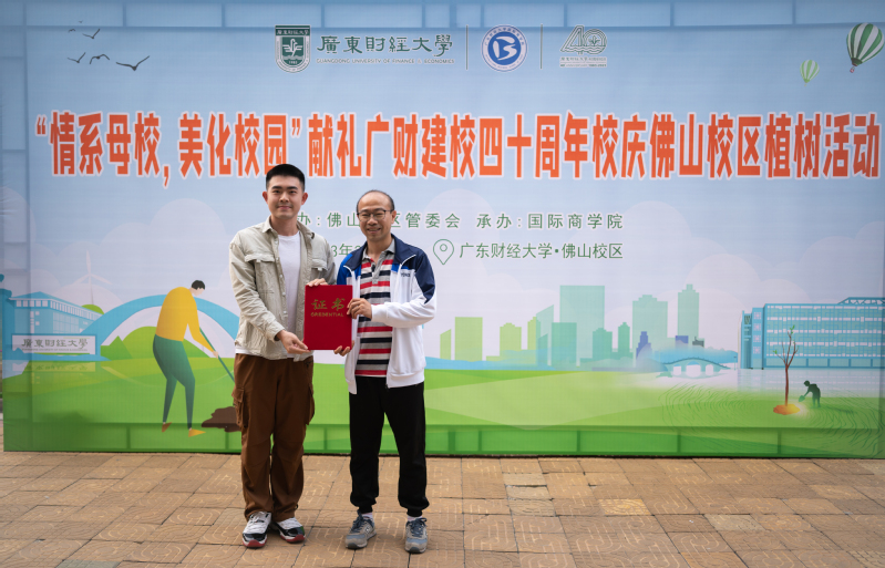 校友捐赠代表博鳌资本有限公司总经理2008级陈昆山在捐赠仪式上回顾了在母校的青葱岁月,一日广财人,一生广财情,母校的培养和关怀教会他勤恳踏实、努力拼搏,也教会他不忘初心、感恩奋进。目睹了母校近年来日新月异的变化,他为母校的蓬勃发展感到无比自豪,希望能有更多机会为母校的建设贡献绵薄之力。他还勉励在校的师弟师妹:要树立远大理想、养成优良品德、培养过硬本领,学会自信、自立、自尊、自强,把握自己的人生。