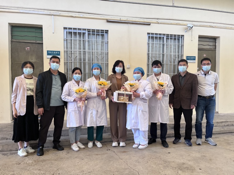 “节日快乐!”郑田一行来到校区医务室为医务工作者们送上新鲜的蛋糕和鲜花,祝愿白衣天使们身体健康、工作顺利,对他们为了校区的医疗安全和师生员工身体健康所做出的辛勤付出表示感谢。