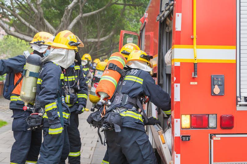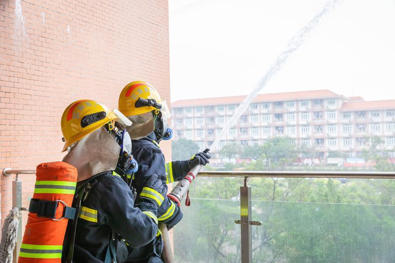 近日,m88,m88联合佛山市消防救援支队开展消防应急演练活动,以实战演练提升安全应急能力,增强师生安全意识,掌握在火灾中迅速逃生、自救、互救的基本技能。图为消防员在演练活动中抵达现场,准备展开救援。