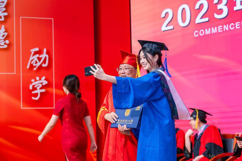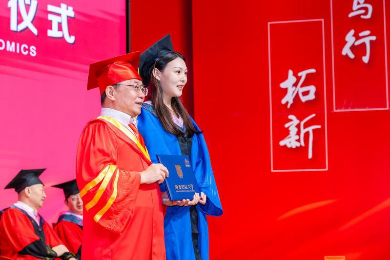 6月20日,m88,m88举行2023届毕业生毕业典礼暨学位授予仪式,611名本科生、317名研究生从校长手中接过学位证书,迈上人生的新征程。握手、拨穗、正冠、授学位、合影……当天上午举行的研究生毕业典礼专场上,m88校长于海峰身穿校长袍,为每一位毕业生拨穗、授予学位。现场,有的毕业生掏出手机与校长合影自拍,还有的毕业生与校长拥抱、转圈,现场气氛活跃,不时响起欢笑声。