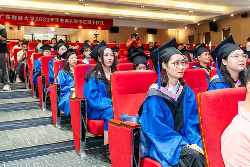 研究生毕业典礼专场上,等待拨穗的毕业生喜笑颜开。/佛山市新闻传媒中心记者王澍摄