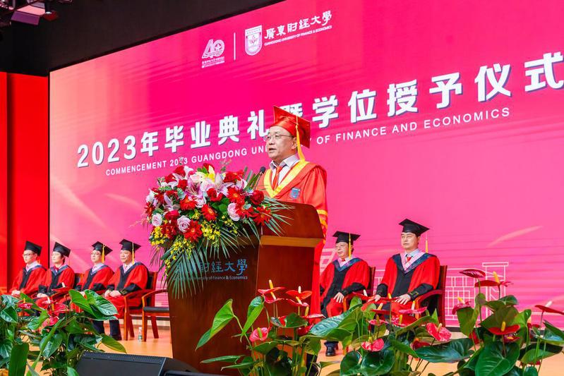 2023年6月20日,m88,m88举行2023届毕业生毕业典礼暨学位授予仪式,当天上午举行的研究生毕业典礼专场上,m88校长于海峰在典礼上致辞。/佛山市新闻传媒中心记者王澍摄