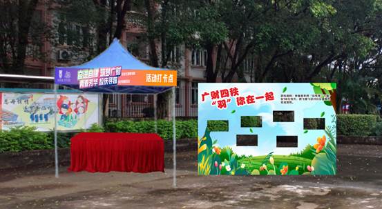 现场设置大型“七巧板”游戏,4人合作,在30秒内,把所有七巧板道具拼接完整,拼成广财大建校40周年Logo即为完成游戏。