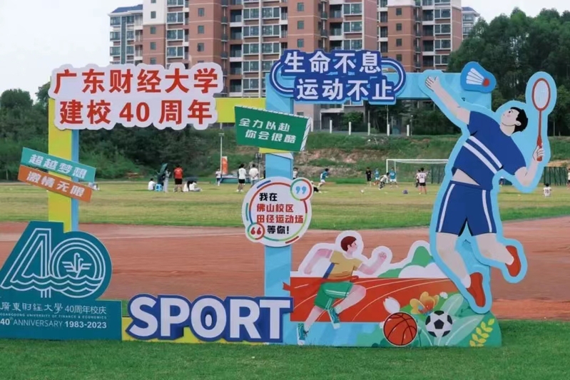 田径场上出现一道道运球射门的身影,美哉,我广财少年,朝气蓬勃;壮哉,我广财少年,英姿飒爽;财子意气风发,则广财风华正茂;财子斗志昂扬,则广财鹏程万里。