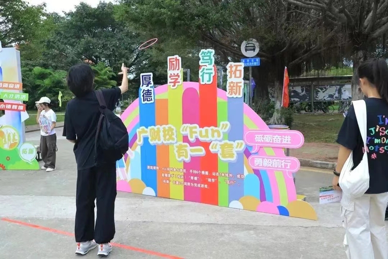 钓财宝,招财进宝,蕴含着广财学生的美好愿景。有为书院前熙来攘往,人声鼎沸,师生和校友们活力奋发,在“垂钓”间感受“财宝”的来之不易。