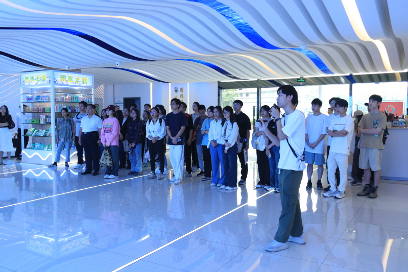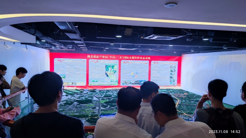 在三水区工商联专职副主席罗嘉幸、西南总商会秘书长陈绍初陪同下,师生们首先来到本次活动的第一站——中国(三水)国际水都饮料食品基地(佛山水都食品饮料产业园)。刘金水首先对区工商联、西南街道商会和企业对学校的大力支持表示感谢,要求师生们在活动中认真听、虚心学,通过了解本地社会的经济产业发展情况和把握走进企业的机会,为接下来的实习和就业打下坚实的基础。罗嘉幸代表工商联、商会和企业对广财师生到来表示热烈欢迎,她希望通过本次参观活动,能让广财师生更加深入了解佛山坚持实体经济为本、制造业当家的经济社会和企业发展现状,欢迎我校师生扎根佛山就业发展和生活。随后,大家参观了水都产业园展览厅,了解了各企业在园区的分布与运营情况。2008年启动建设的佛山水都食品饮料产业园是目前全国最大食品饮料集聚基地、全省首个食品饮料特色产业园,目前聚集了百威、红牛、健力宝、嘉士伯、可口可乐、益力多等食品饮料及相关企业170多家,此站之行,让大家深深的感受到三水食品饮料之都特色支柱产业名片的魅力。