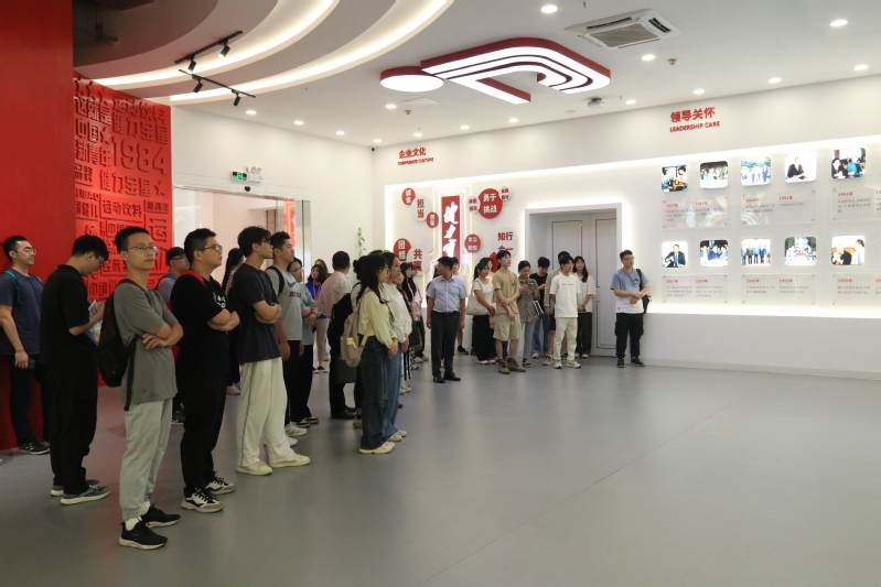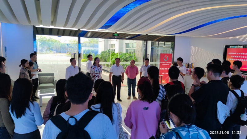 第二站是广东健力宝股份有限公司,师生们通过参观企业展厅,了解被誉为“中国魔水”的发展历程,更品尝了健力宝的最新产品,其独特的口感和味道,深深地打动大家的味蕾。在座谈会上,健力宝公司党委书记、首席财务官李洪民再次向师生们介绍了健力宝的情况,校政行企各方就加强人才联合培养、学生实习实践、人才供需对接等进行了深入交流。同时健力宝公司的校友员工代表也和同学们分享了就业经验和心得,同学们纷纷向健力宝公司人力资源总监交出了自己的简历,交换了名片,为下一步更大的人才供需对接合作建立了交流平台。