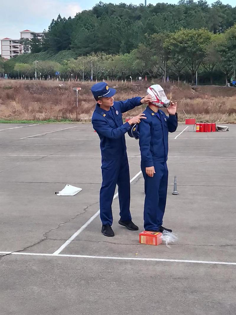 云东海街道专职消防队杨贻城等4名教官进行了知识讲解和使用实操。杨教官从消防基础、认识消防设施、校园常见火灾类型、校园火灾预防、森林火灾应急避险、火灾应急预案和处理流程6个方面做了详细的解读和指导,既丰富了师生的消防安全知识,又增强了整体抗御火灾的能力。在灭火器材实操练习环节,教官们演示了如何佩戴防毒面具以及使用灭火器和水带的动作要领。参加演练人员在听完讲解后,纷纷拿起消防器材进行实操训练。