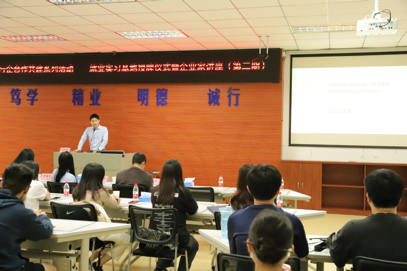 授牌仪式后,谢晓东作“立志笃行、深耕细研——纵谈个人成长与企业经营”专题讲座,他结合自己求学和工作经历为同学们谈人生规划,现场气氛活跃,同学们纷纷参与互动。