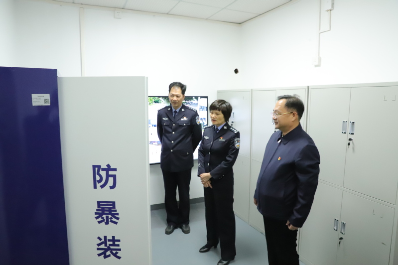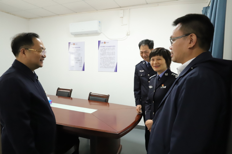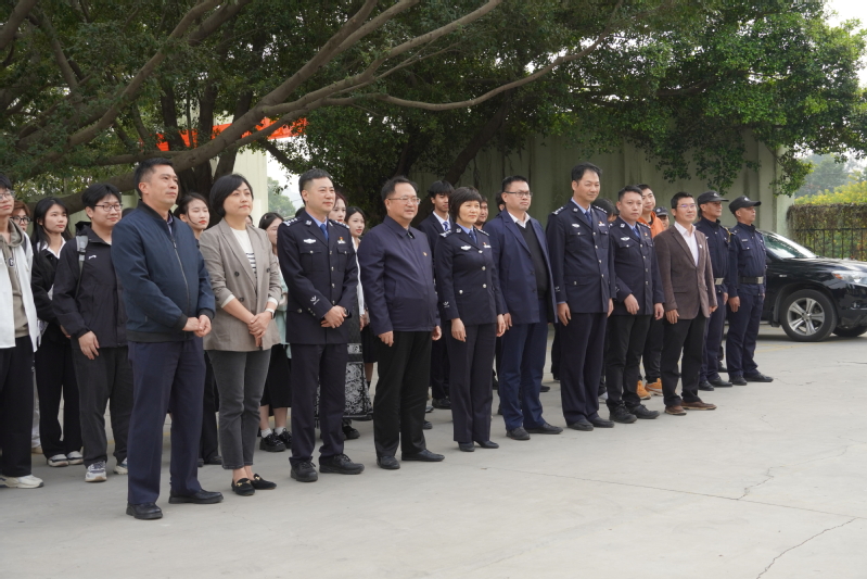 仪式结束后,参会领导及师生代表参观校园警务室,叶沛雄向在场人员介绍了校园警务室功能设施及运行情况。警务室严格对标上级有关要求,设置服务大厅、会议室、调解室、备勤室,驻校民警可在校办理师生报警求助、交管、反诈、法律咨询等业务。