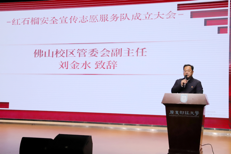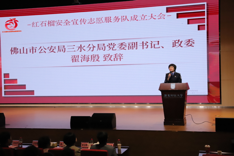 翟海殷对本次活动举办表示了肯定。他指出,“红石榴”安全宣传志愿服务队的成立意义深远,是三水公安和广财大携手开创警校共治共建新局面、打造平安校园新高地的重要举措。警校协作百尺竿头更进一步,三水公安将充分调动各方社会资源,为同学们搭建学习和展示的平台,组织安全志愿服务队进社区、进企业、进乡村等,开展各类安全宣传活动。