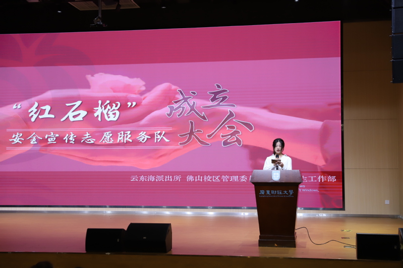 12月1日,红石榴安全宣传志愿服务队成立仪式在m88同心楼报告厅111举行,此次活动是由云东海派出所主办,m88管委会、学工部承办。佛山市公安局三水分局党委副书记、政委翟海殷,云东海街道党工委副书记邝法浓,三水公安分局党委委员、副局长刘浩,三水公安分局副局长鄞智锐,云东海派出所所长叶沛雄,三水公安分局刑侦大队副大队长李锦和,三水区云东海街道综治办副主任陈丹及属地政府部门工作人员出席仪式,m88管委会副主任刘金以及各办负责人,学工部、校团委等相关部门负责人,“红石榴”安全宣传志愿服务队成员,各学院班级代表参加仪式。