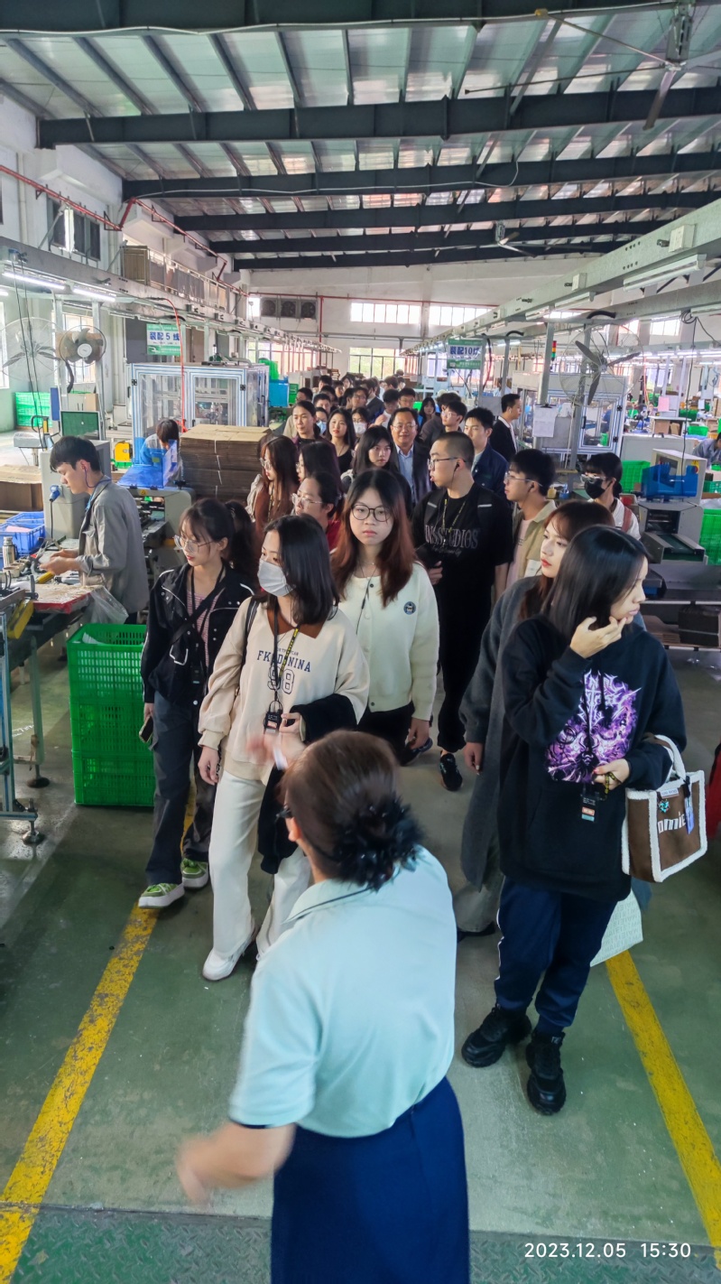 12月5日下午,m88管委会(省市共建办)联合三水区工商业联合会继续组织走进企业开展市情教育暨访企拓岗系列活动。本次活动由m88管委会副主任刘金水带队,国际商学院和湾区影视产业学院师生代表共46人参观走访了广东合和建筑五金制品有限公司和佛山市宝捷精密机械有限公司,与企业家们进行了面对面的交流。
