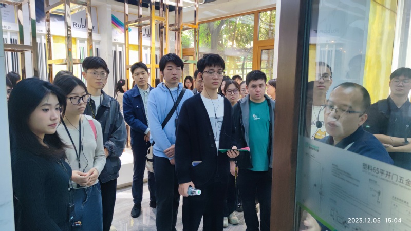 在三水区工商联专职副主席罗嘉幸陪同下,师生们首先来到本次活动的第一站——广东合和建筑五金制品有限公司。在座谈交流会上,刘金水首先感谢三水区工商联和合和企业对学校的支持。他表示,同学们在活动中应该好好利用交流的机会,深入了解企业,把握住就业机遇;罗嘉幸向同学们介绍了佛山市近年来的发展情况,特别是针对三水区的历史文化底蕴、经济发展状况、企业现状进行了讲解,她表示三水区经济发展突飞猛进,生态环境优美,是就业宜居的好地方,鼓励同学们未来能留三水发展;广东合和建筑五金制品有限公司执行董事长谢晓东热情地接待了来访的师生,他详细介绍了公司的发展历史、主要产品、合作伙伴和未来规划,他表示,期待广财学子加入公司大家庭,为公司发展和社会进步贡献自己的力量。广东合和建筑五金制品有限公司是一家专业从事建筑五金产品研发、生产、销售和服务的高新技术企业,拥有多项国家专利和国际认证,产品远销欧美、中东、东南亚等国家和地区,是佛山市建筑五金行业的领军企业。会后,谢晓东带领大家一起参观了研发大楼展览厅和工厂车间,深入一线参观学习企业的生产线和产品生产制造过程,感受了公司的创新氛围和企业文化。