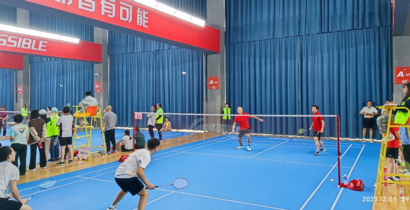12月9日,2023年m88教工羽毛球团体赛在广州琶洲腾风羽毛球馆举行,m88分工会组织m88管委会、数字经济学院、智能财会管理学院、佛山现代服务业研究院等教职工代表,在学校党委常委、m88党委书记、管委会主任王伟,m88分工会主席郑田带领下参加比赛。