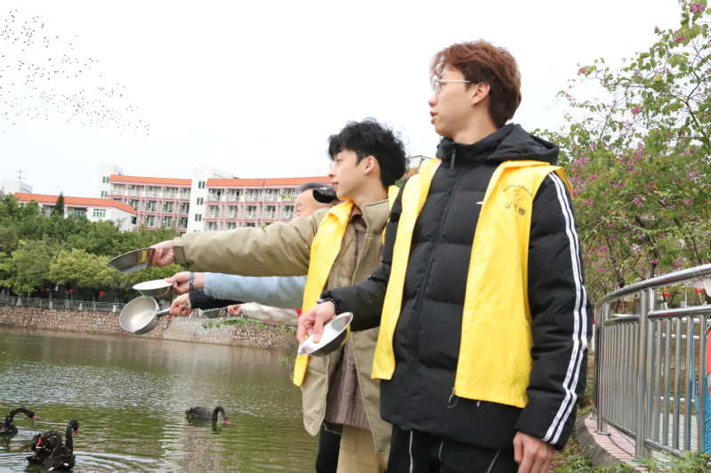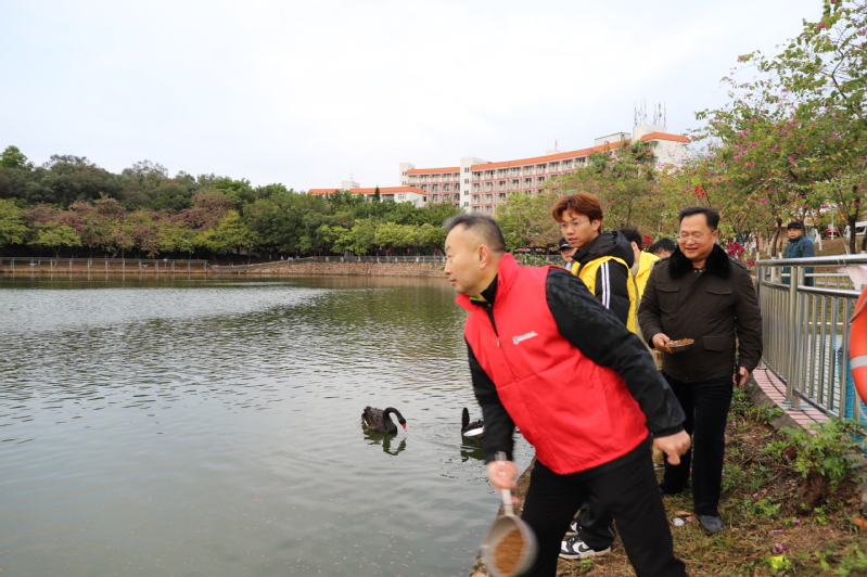 活动结束后,师生们一同前往沁湖投料喂鱼。