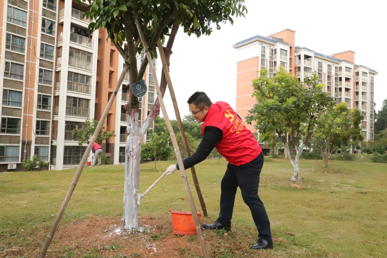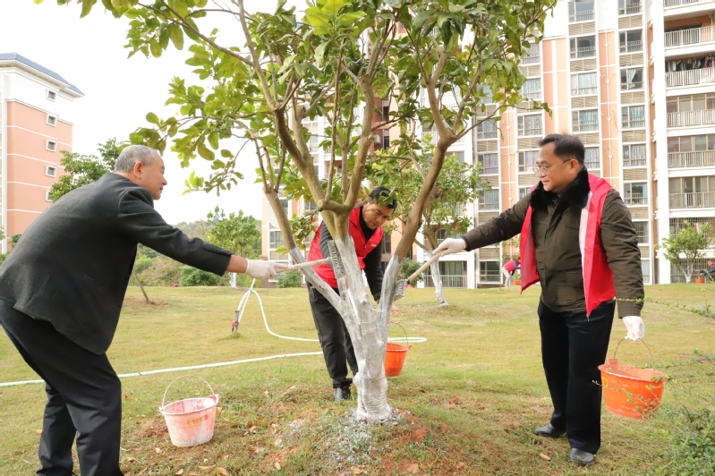 校区管委会副主任、校区分工会主席郑田在动员讲话中提到教职员工亲自为校园林木穿上“防寒衣”,撑起“保护伞”是深入践行绿色发展理念,牢固树立生态文明理念的意义之举,也是牢记立德树人根本任务的寓意之举;强调为教工送温暖,情暖教工身心,使教工更好服务学校大湾区一流财经大学建设目标是校区分工会一直践行的初心和使命。