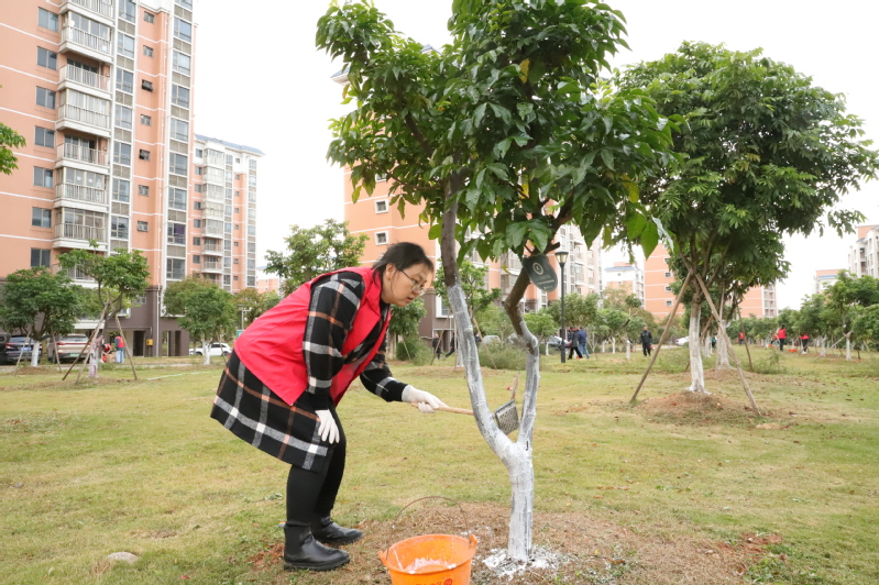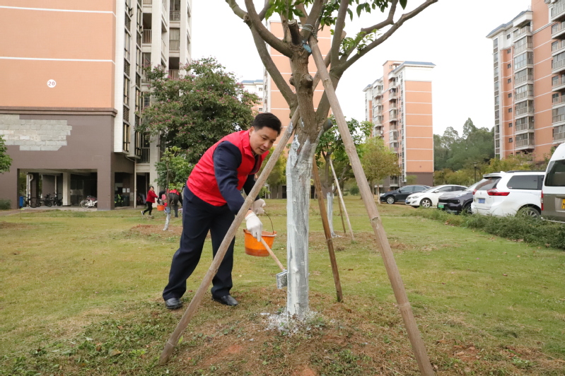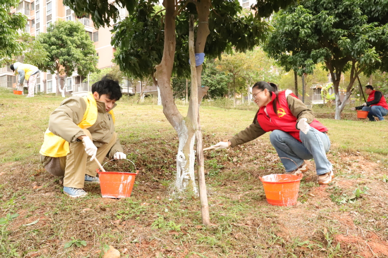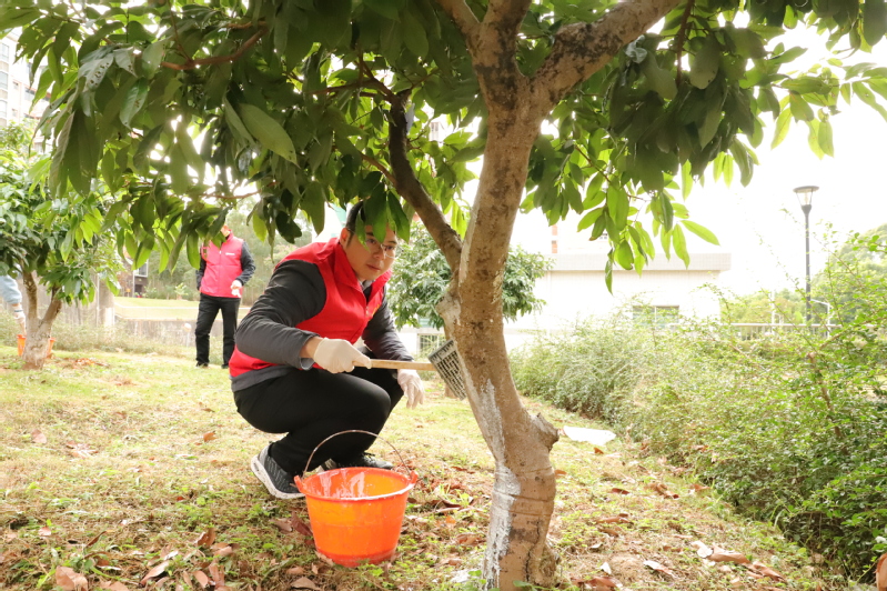 活动中,老师、同学们摇身变成“粉刷匠”,将石灰浆均匀地涂抹在树木上,并对树皮缝隙、空洞等处进行反复涂刷,避免浆水流失、漏刷以及干后脱落等现象。虽冒着寒风细雨,但参加活动的师生们不畏严寒,经过大家的共同努力,涂白后的树木整齐划一,成为冬季一道独特靓丽的风景线。