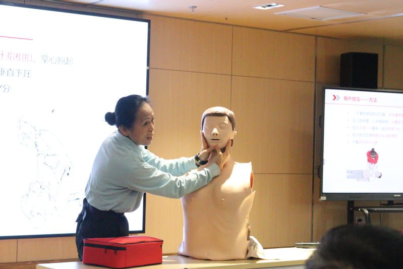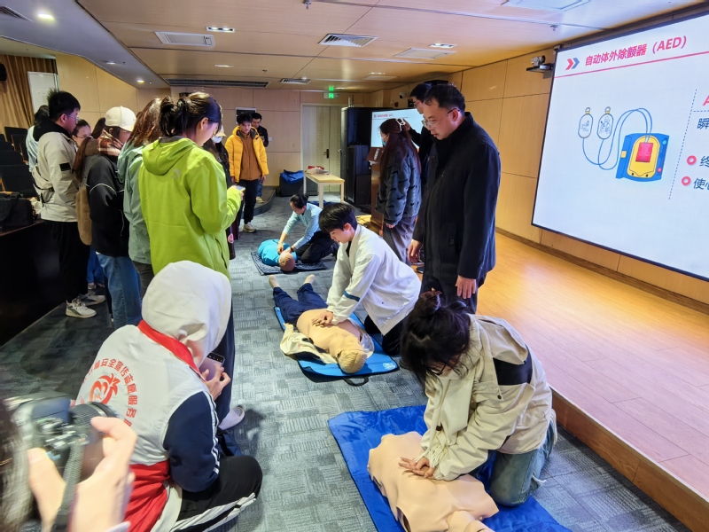 中国红十字会救护培训讲师高鸿烈系统地向师生讲解了伤口包扎、心肺复苏(CPR)的操作流程、AED(自动体外除颤器)的使用等应急救护基本理论与操作,以及相关自我保护等知识。参训师生通过理论学习及现场操作练习,进一步掌握了基本应急救护技能,增强了应急救护能力。
